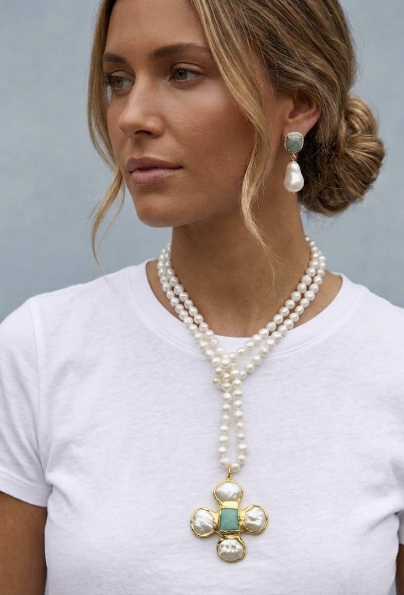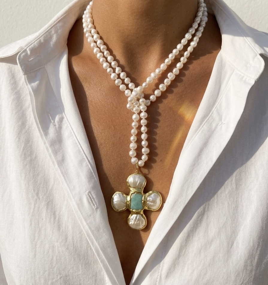 Cannes Pearl Cross necklace