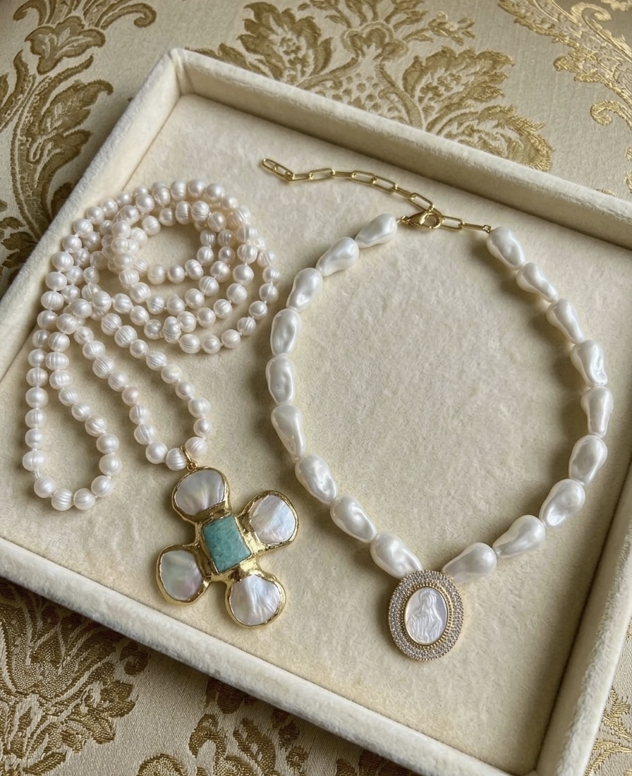 baroque pearl /amazonite cross pendant