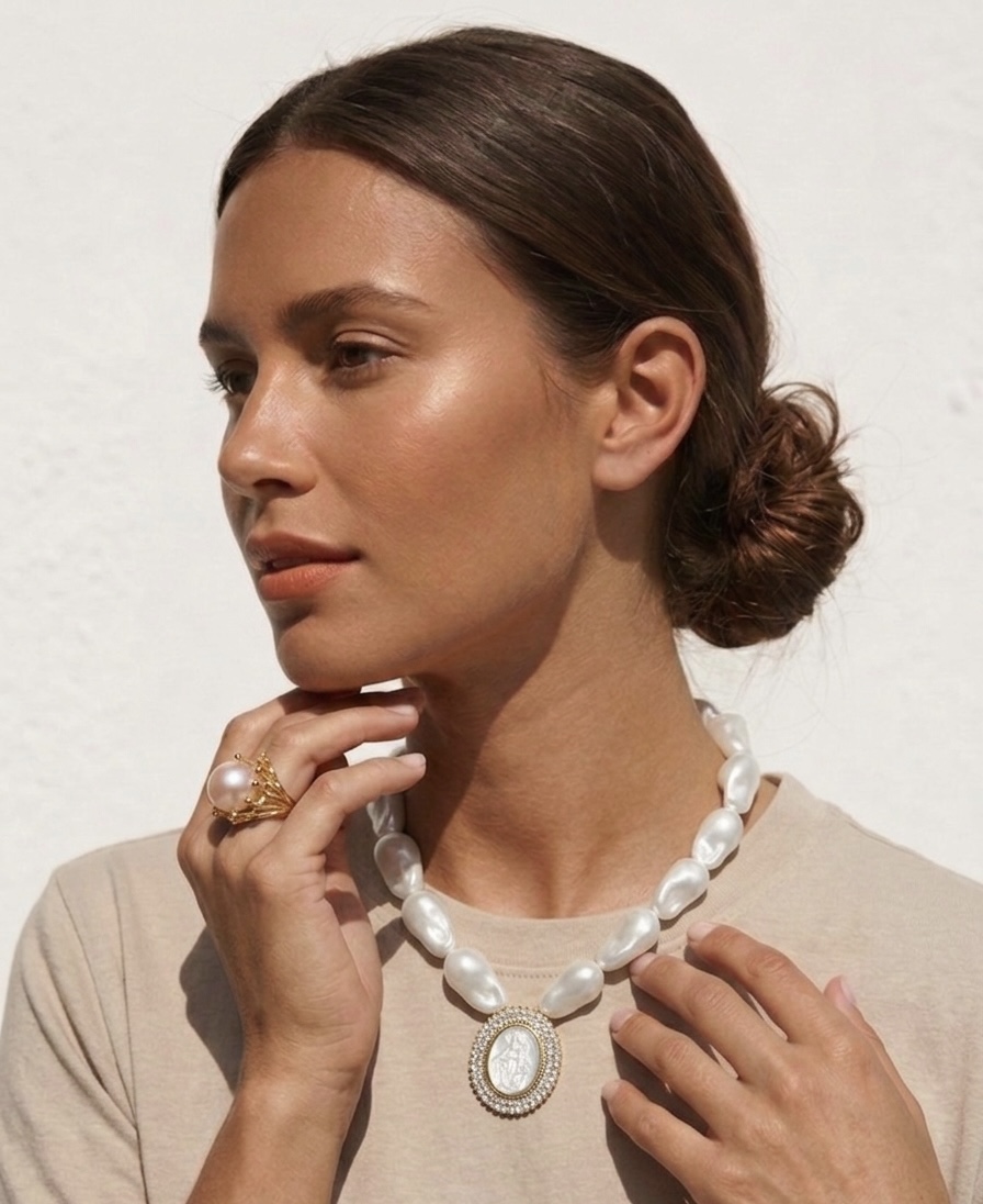 Be the first to review “Mother of Pearl Madonna necklace”