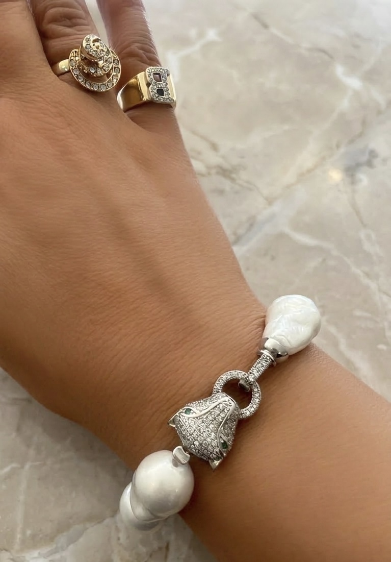 zirconia silver plated panther clasp