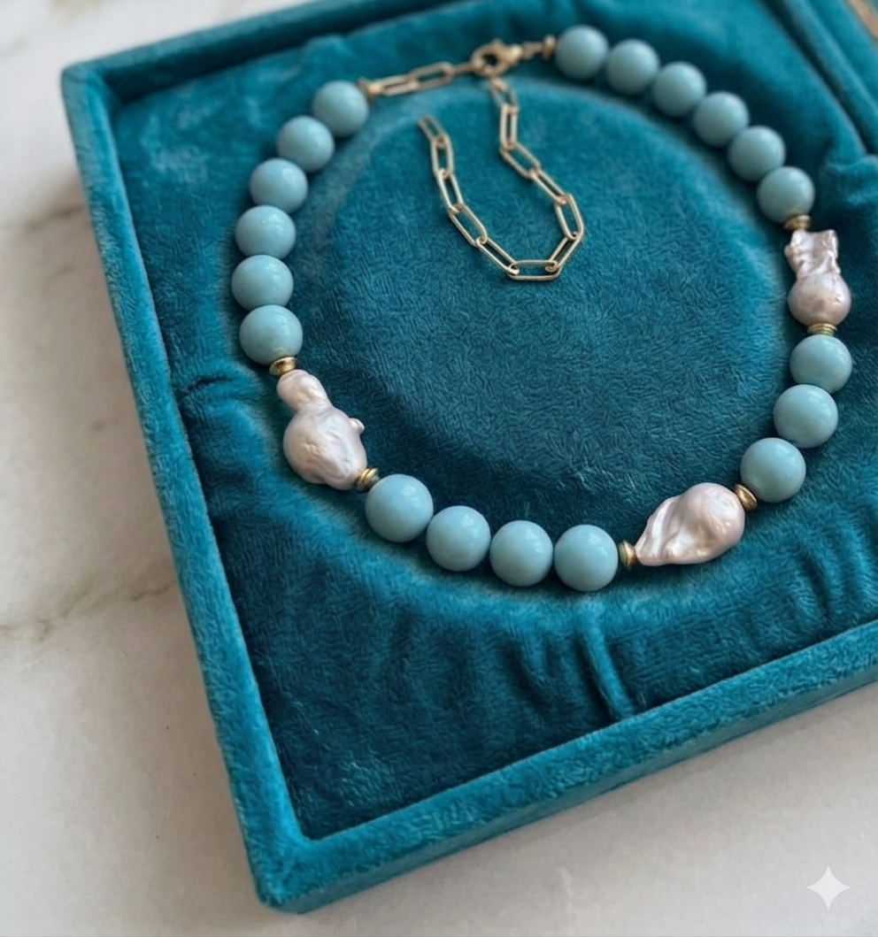 Be the first to review “Turquoise Aeolian Pearl necklace”