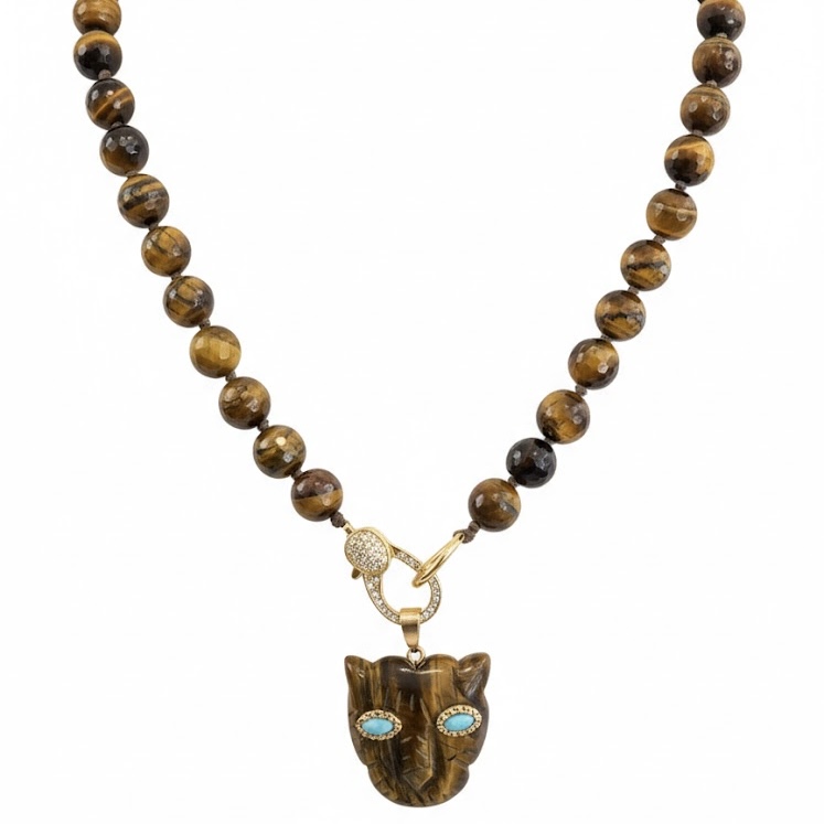 Tigereye panther gem necklace