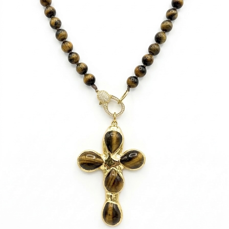 Monaco tigereye cross necklace