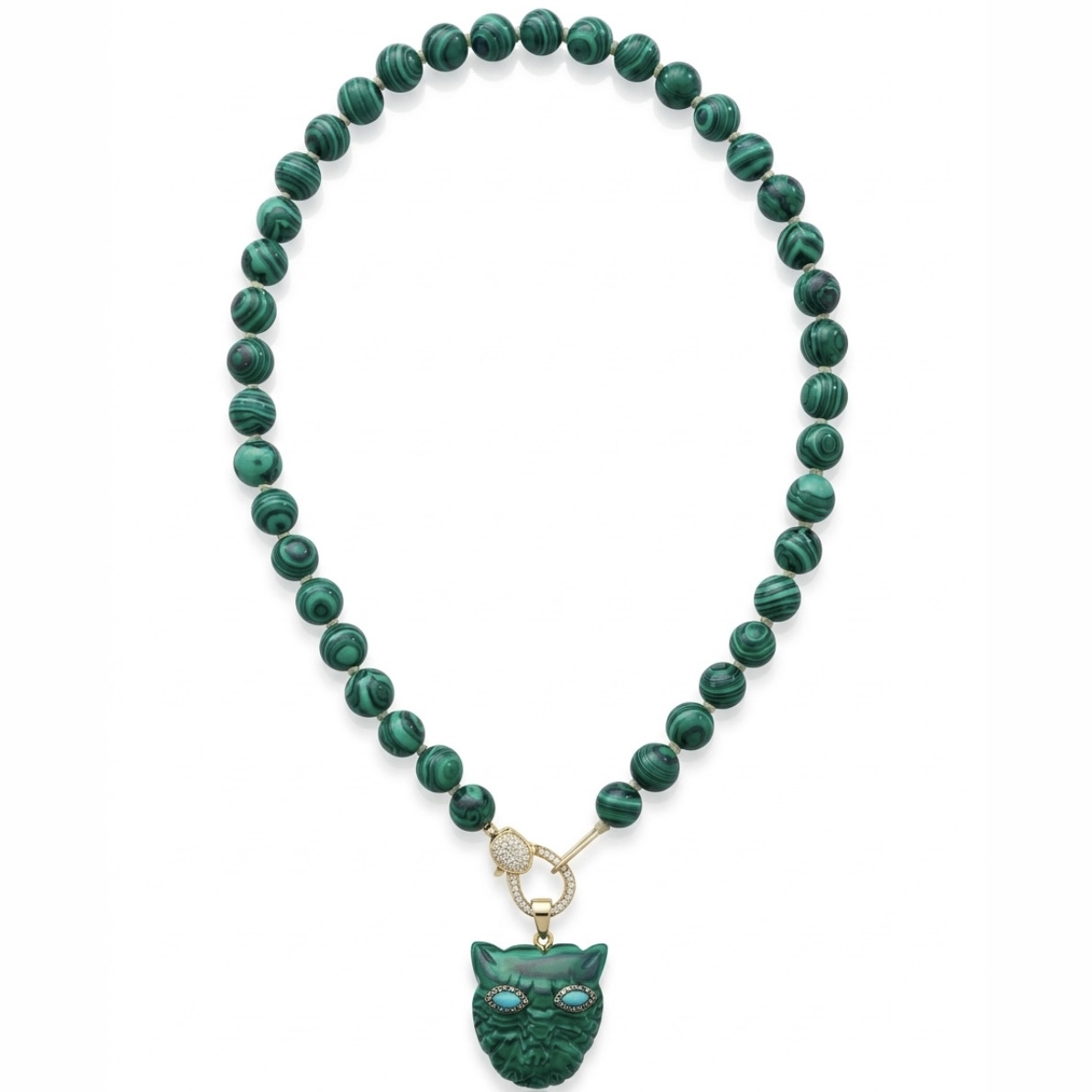 Green malachite panther necklace